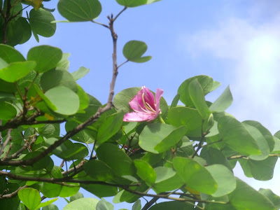 La "casco e' vaca" es prácticamente una orquídea arbórea ¡! Magnífica su adptación a los medios urbanos. atención a la Municipalidad.
